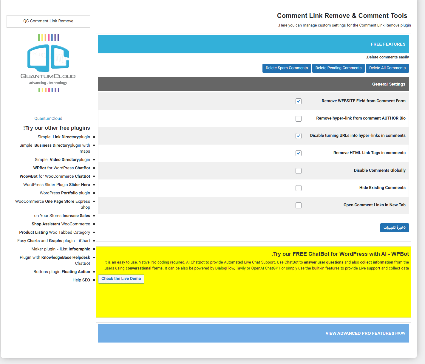 این افزونه وردپرس قابلیت های دیگری را هم در بخش Delete comments easily دارد که شما میتوانید به عنوان مثال تنها با یک کلیک همه دیدگاه های اسپم سایت خودتان را پاکسازی کنید.که برای این منظور هم میتوانید از این بخش افزونه استفاده کنید.